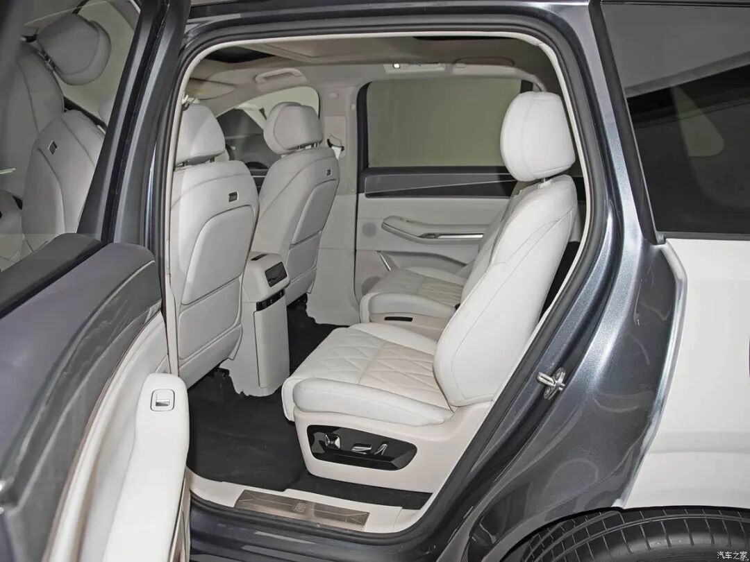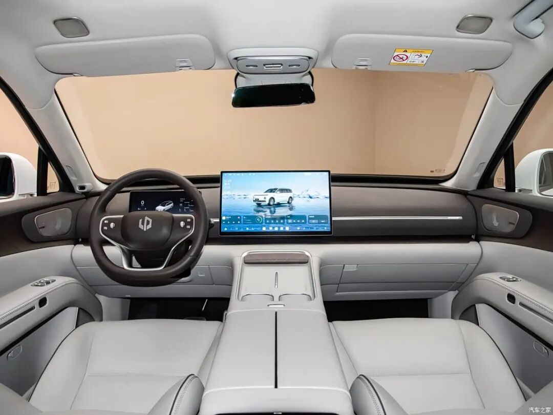 内饰搭载60英寸AR-HUD+10.25 英寸液晶仪表+17.3英寸中控屏,后排提供6英寸后排多功能控制屏+21.4 英寸3K电动娱乐屏,小桌板、8.1L的冷暖箱遮阳帘、全景天幕。增程车型纯电续航达到500km,采用800V平台;纯电车型采用1000V平台,纯电续航720km,0-100km/h加速时间为3秒级。搭载高通骁龙双8797至尊芯片,算力可达1280TOPS,支持VLA辅助驾驶,包含车位到车位功能。